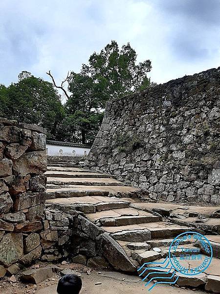 到達「ふいご峠」後,因為還得登爬一段山路,入口有登山杖提供,因有很大一段原始山路建議拿著登山杖較好。從入口到本丸大概約15~20分鐘登山,沿路除了原始山路,也有不少石階,上山也是氣喘吁吁的。