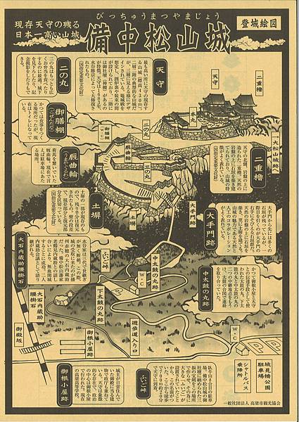 本丸是要購票進入,從二之丸望見的天守閣屬於較小型的天守閣,備中松山城也是大河劇「真田丸」片頭音樂的取景處。