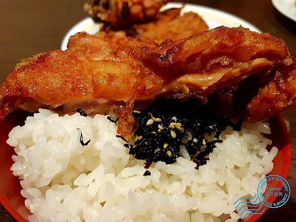 主角之二的雞腿草袋飯,精選的去骨雞腿利獨家秘方醃製後下油鍋,封住雞腿鮮美肉汁。嚐起來鮮嫩多汁,惟瀝油不足,略顯油膩感,搭配草袋飯與味增湯嚐起來也著實美味。