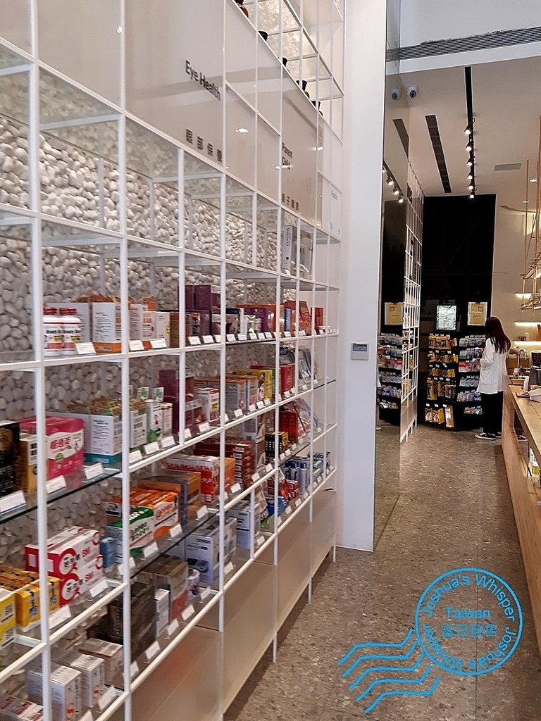但打開大門進入藥局後,會被設計感強烈的風格所吸引,簡潔的展示陳列,不只是藥品販售,更提供眾多保健食品與美容保養商品,更甚者還有販售生活風格的茶葉與冰品。
