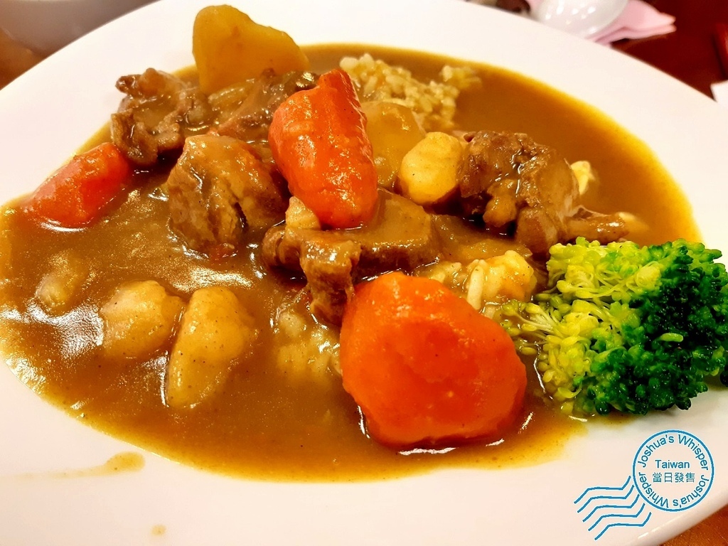 不可否認在山東餃子牛肉麵館吃咖哩雞肉總覺得哪裡怪怪的,但這咖哩雞肉飯真的不錯吃,雞肉鮮嫩,類似日式的咖哩醬汁拌飯很入味,一口接一口不知覺就清盤了。