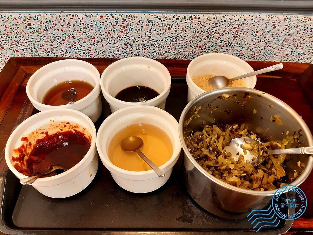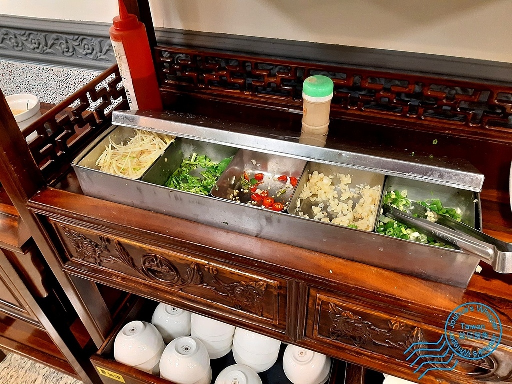 一旁還有蔥、薑絲、蒜頭、辣椒等佐料,讓有需求的朋友可隨意自取。