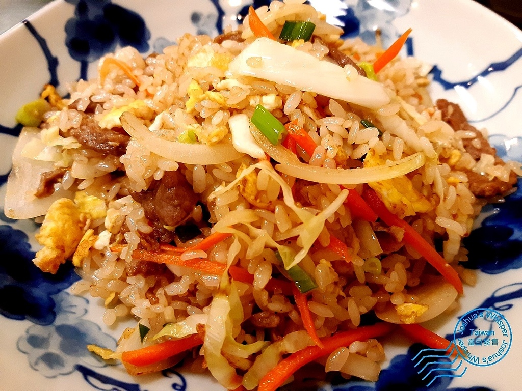 牛肉炒飯,飯粒粒粒分明,除了牛肉絲,佐以切絲紅蘿蔔、蔥等大火快炒,吃得出師傅的功夫,可惜份量稍小了點。