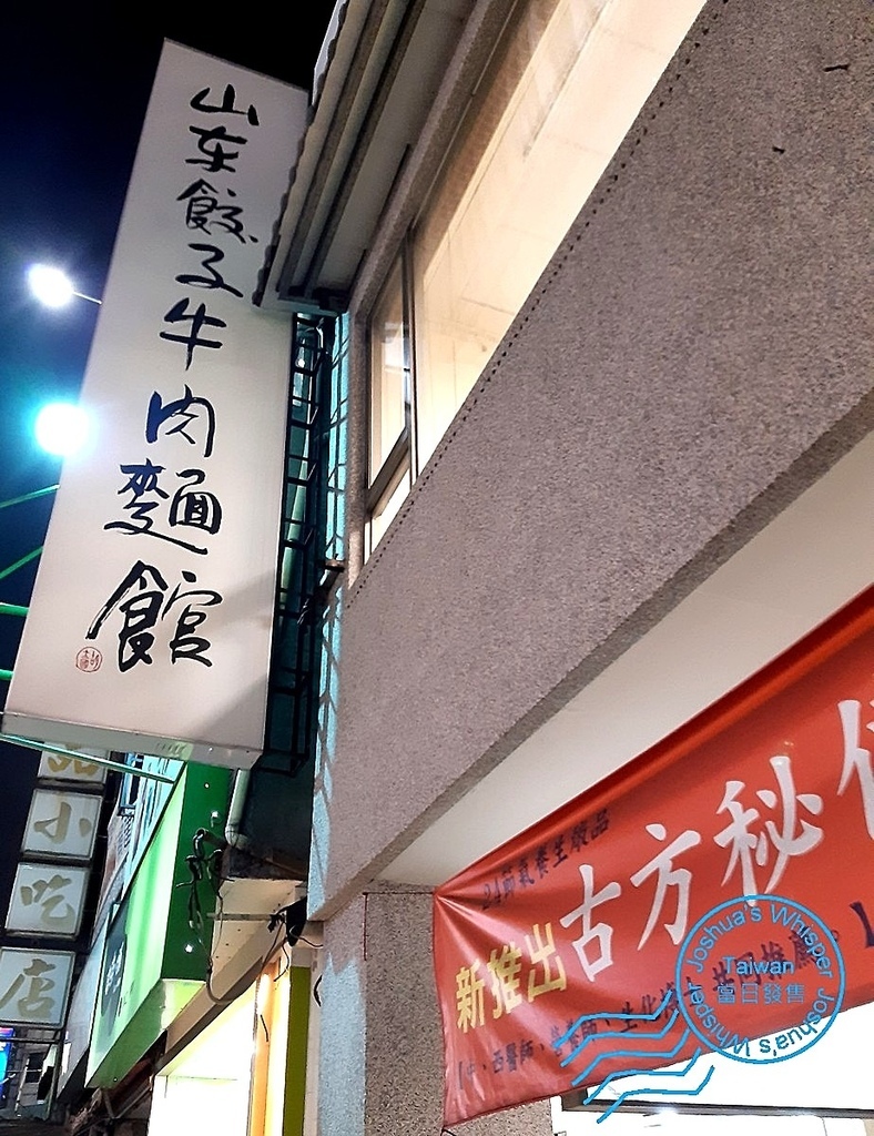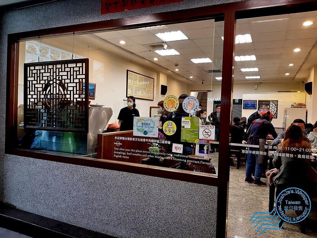 位於公益路上的山東餃子牛肉麵館,店頭上方懸掛的美食照片很難不被吸引,用餐時間往往也是滿滿人潮。