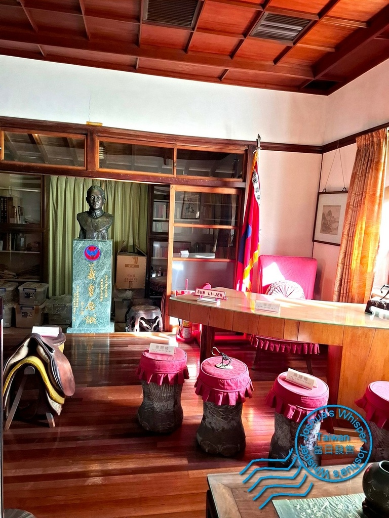 在孫將軍鐵粉吳大哥的引領下,以他自備A4資料夾裡厚實的文件,彌補了紀念館裡可能缺失的資料,我們循著參訪路線在宅邸裡遊走。看著宅邸裡佔地最大客廳裡簡樸實用的家具,書房裡除了眾多書籍,猶見將軍風範的擺設,都可見孫將軍的風骨與樸質。