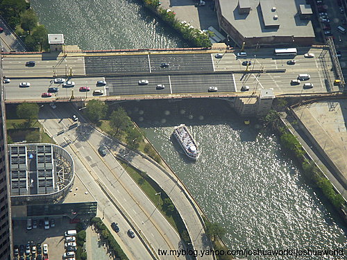 芝加哥市區有芝加哥河環繞,所以有很多船隻、遊艇在河上行走。