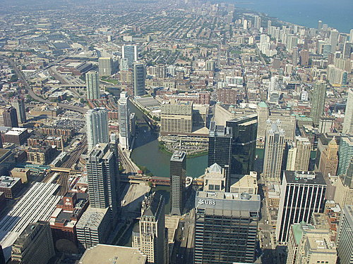 芝加哥也擁有美國最高的建築 - SEARS TOWER 。以下的照片就是從這個建築的高點看向整個芝加哥市區。