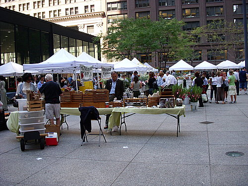 在市中心的農夫市場,就在聳立的大廈群下的廣場展開了,讓繁忙的上班族可以偷閒購買。