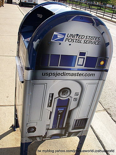 美國郵政的郵筒,粉刷成星際大戰裡的機器人 - R2D2 的模樣。