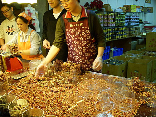 現做的各種花生餅,還可以試吃喔!小弟不禁想到,在這條街有那麼多小吃可以試吃、試喝,那附近的居民有空來這裡吃吃喝喝不就可以省下許多餐費。