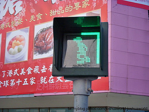 雖然全台灣幾乎都可以看到這種過馬路的綠色小人標示燈,但這個就是有點不同。有別於一般以數字表示時間,它是以四周的綠色線條來表示所剩時間,當綠色線條跑完時,就表示行人要停住了喔!